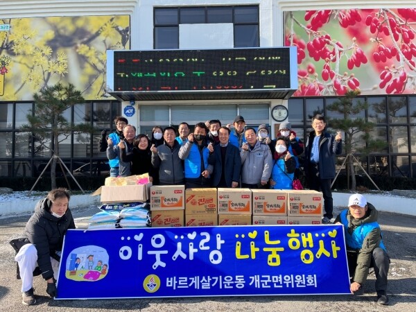 이광범 개군면장은 “갑작스러운 한파로 몸과 마음이 움츠러든 요즘, 지역사회의 관심과 사랑으로 어려운 이웃들에게 큰 힘이 되고 있다”며 “전해주신 물품은 도움이 필요한 이웃들에게 잘 전달하겠다”고 말했다.