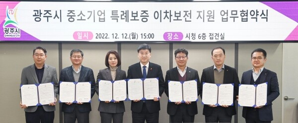 지난 12일 시청 6층 접견실에서 진행된 협약식에는 방세환 시장, 경기신용보증재단 최민호 광주지점장, IBK기업은행 권오삼 경안지점부점장, KB국민은행 경기광주종합금융센터 박영진 지점잠, NH농협은행 광주시지부 임동건 지점장, 우리은행 경기광주금융센터 임정욱 센터장, KEB하나은행 경기광주지점 황소희 점장 등 관계자 20여명이 참석했다.