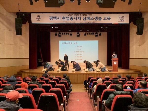 시 관계자는 “오늘 실시한 교육으로 작업 중 응급상황 발생 시 현장근로자들이 적극 대처하는데 도움이 되길 바라며 앞으로도 평택시 소속 근로자의 중대산업재해 예방 및 대응역량을 향상시킬 수 있도록 최선을 다하겠다”고 말했다.