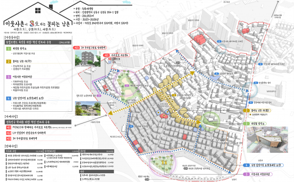 이번에 선정된 ‘이웃사촌과 3생하는 꽃피는 남촌’은 개편된 도시재생정책을 적극 반영해 골목상권 자생 거점시설인 ‘희망꽃 창작소’, ‘꽃피는 남촌 가’, ‘이웃사촌 어울마당’ 등을 마중물 사업으로 기획했다.