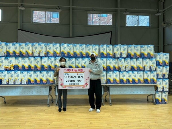 기탁된 휴지는 통합사례관리가정을 포함해 관내 복지사각지대, 장애인, 한부모 가정, 홀몸 어르신 등에 전달될 예정이다.