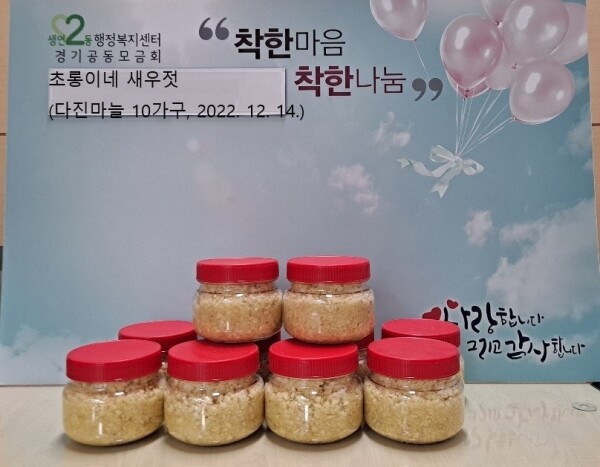 초롱이네 새우젓은 매달 저소득 취약계층 10가구에 젓갈 또는 다진 마늘을 후원하며 이웃사랑을 실천해 오고 있다.