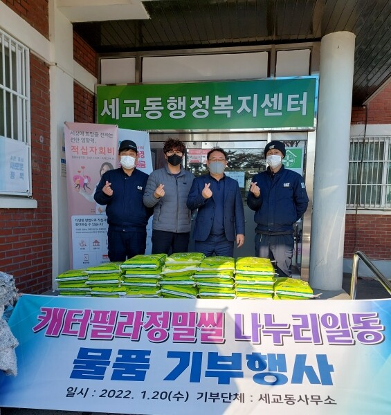 최원종 세교동장은 “어려운 이웃을 위해 정성을 보내준 ㈜캐터필라정밀씰 ‘나누리’ 봉사단체 관계자분들에게 감사드리며 기탁해주신 물품은 관내 소외계층에게 소중히 전달하겠다”고 말했다.
