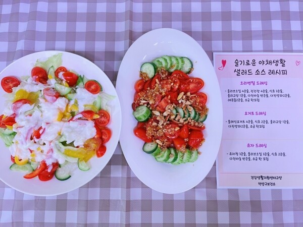 참여자들은 교육 현장에서 센터의 전문 영양사의 강의를 듣고 샐러드 소스 3종을 직접 만들고 시식하는 시간을 가졌다.