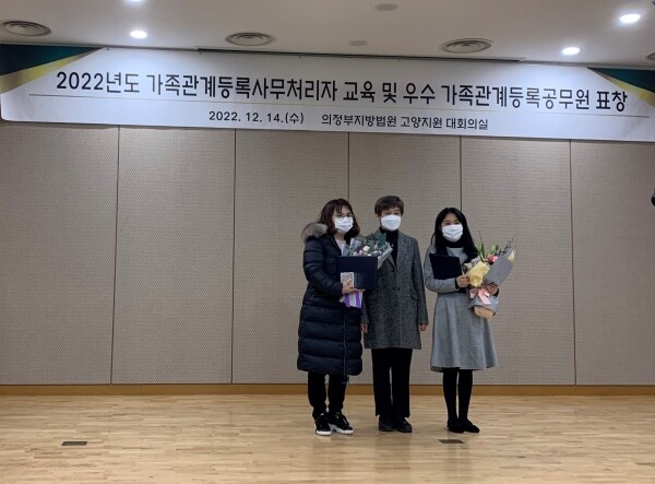 법원행정처에서는 매년 가족관계등록사무 처리에 공헌한 가족관계등록 업무 담당자에게 표창을 수여하고 있으며 올해는 위와 같은 공로에 크게 기여한 김현정 주무관이 표창을 수상했다.