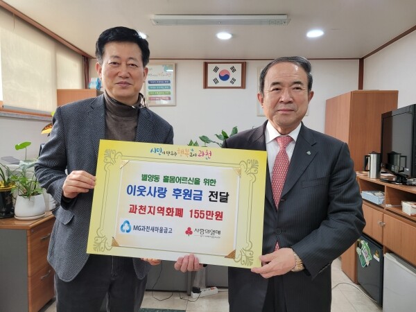 이외에도 지난 12일에는 과천새마을금고에서 155만원을, 13일에는 별사모에서 100만원을 별양동 지역 내 어려운 이웃을 위해 써달라며 별양동주민센터에 전달한 바 있다.