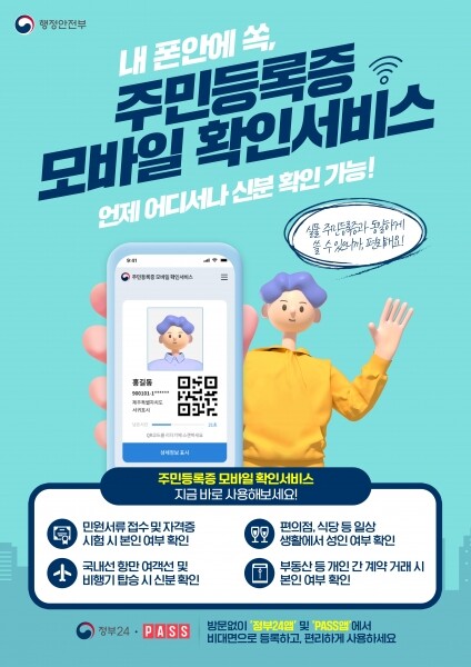 주민등록증 모바일 확인서비스를 이용하면 관공서 민원 서류 발급 편의점 및 식당 등 성인 여부 확인 국내선 및 여객선 탑승 수속 개인 간 계약 거래 시 본인확인 등 다양한 곳에서 실물 주민등록증 없이 신분 확인이 가능하다.