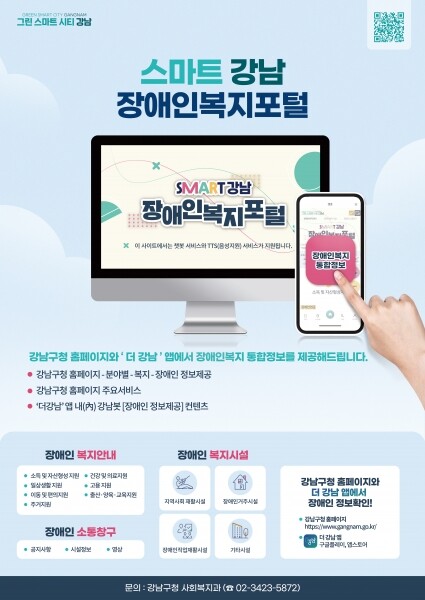 조성명 강남구청장은 “이번 장애인 복지포털 구축으로 여러 곳에 나뉘어 있던 정보를 한 곳에서 쉽고 빠르게 확인할 수 있게 됐다”며 “앞으로도 스마트 복지 지원을 강화해 구민과 장애인이 체감할 수 있는 공감동행 복지를 실현하겠다”고 밝혔다.