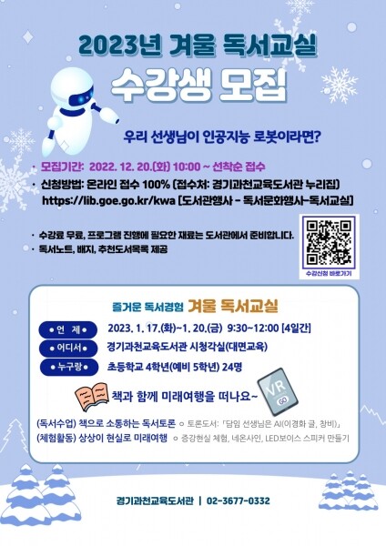 참여를 원하는 사람은 20일부터 경기과천교육도서관 누리집에서 회원가입 후 신청하면 된다.