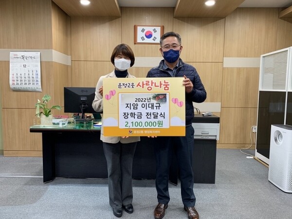 김윤정 운정2동장은 “어려운 경제 상황 속에서도 선친의 유지를 받들고 실천하는 이종한 회장님께 존경의 말씀을 전한다”며 “자신의 꿈을 키워가는 청소년들이 앞으로 지역사회를 이끌어 갈 훌륭한 인재가 돼 주길 바란다“고 말했다.