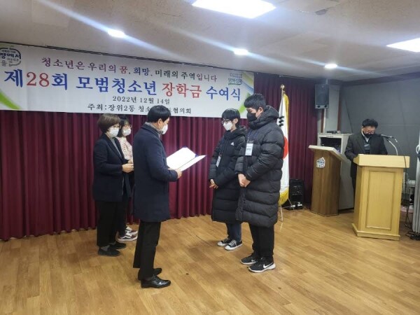 이번 28회 수여식에는 장학생과 학부모, 협의회 위원 등 30여명이 참석한 가운데 모범 청소년 8명에게 총 180만원을 전달했다.