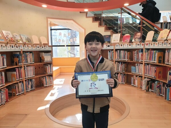 권찬희 어린이는 12월 17일 어린이도서관에 방문해 세천책 달성 인증서와 메달을 받았다.