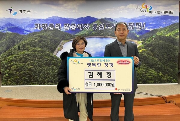 상천3리 부녀회장 김혜정, 청평면에 이웃돕기 성금 100만원 기탁