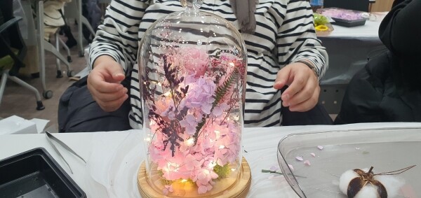 이번 프로그램은 대면으로 진행됐으며 시각·후각·촉각을 자극하는 식물과 유리 돔 장식을 통해 심신을 안정시키는 ‘프리저브드꽃 원예 수업’으로 12월 15일 ~ 12월 16일 오전 10시 30분부터 11시 30분까지 약 1시간 동안 이루어졌다.