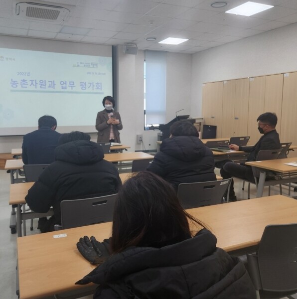 이날 평가회에서는 농촌자원 4개 분야와 도시농업 3개 분야, 농업생태원 관리 및 계절 축제와 친환경 실증포 운영 결과 그리고 4개 읍면 농업인 현장지도 강화 사업 등 2022년 한 해 동안 추진한 사업 성과를 공유하는 시간을 갖고 종합토의를 하는 순서로 진행됐다.