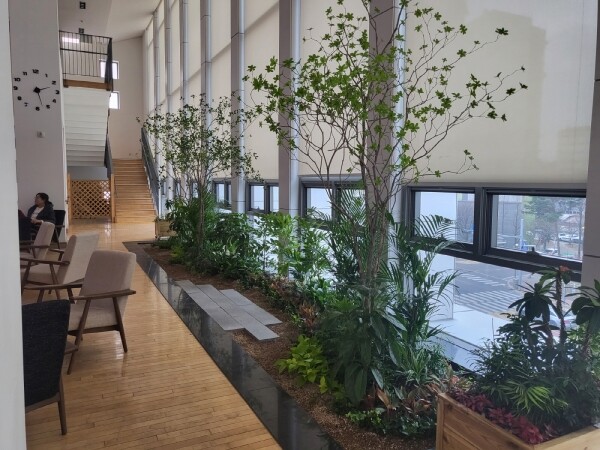 실내 정원은 3층 카페 창가에 13.5㎡ 규모로 조성됐다.