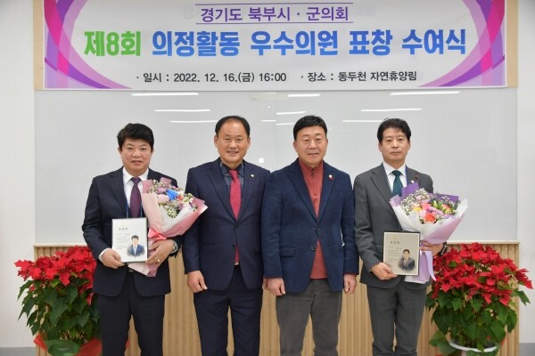 "경기북부시군의회 의장협의회 의정발전 우수 의원 표창"은 한 해 동안 다양한 분야에서 뛰어난 의정활동을 펼친 의원에게 수여하는 상으로 황주룡 부의장은 '주민참여소통', 김재수 의원은 '지역현안해결' 분야에서 그간의 공로를 인정받아 수상의 영광을 안았다.