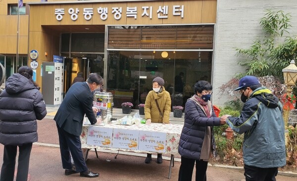 이명숙 중앙동통장단 대표는 “추운 날씨에 주민 여러분께서 생강차와 팥죽을 드시고 따뜻한 연말을 보내시길 바란다.