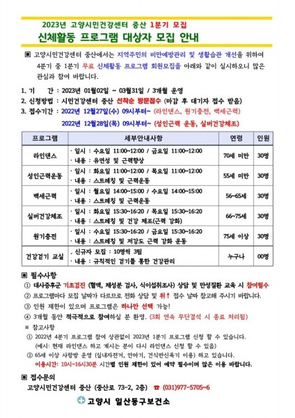 자세한 문의는 고양시민건강센터로 문의하면 된다.