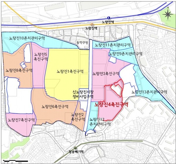노량진4구역은 노량진재정비촉진지구 내 2, 6, 8구역에 이어 4번째로 관리처분계획인가를 받았으며 이후 진행될 주민 이주 및 건축물 철거 기간 중 사업시행계획 변경을 한차례 거쳐 2025년 본공사 착공 예정이다.