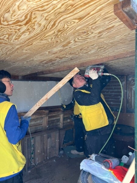 봉사는 사랑나눔회 회원 등 14명이 참여해 저소득 중증장애인 가구를 대상으로 지붕 마감공사 및 단열공사 등 이웃 사랑을 실천했다.