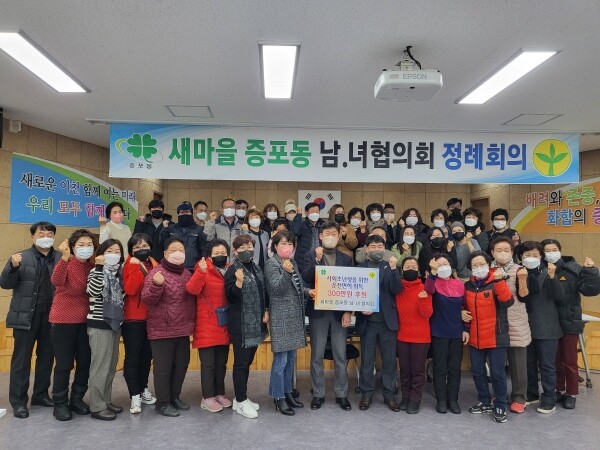 한만준 증포동장은 “새마을 증포동남녀협의회가 증포동을 위해 올해도 많은 수고를 했다 친환경사업을 통해 마련해준 기탁금이 이제 사회초년생이 될 자녀들에게 실질적인 도움이 되리라 여긴다”며 감사함을 전했다.