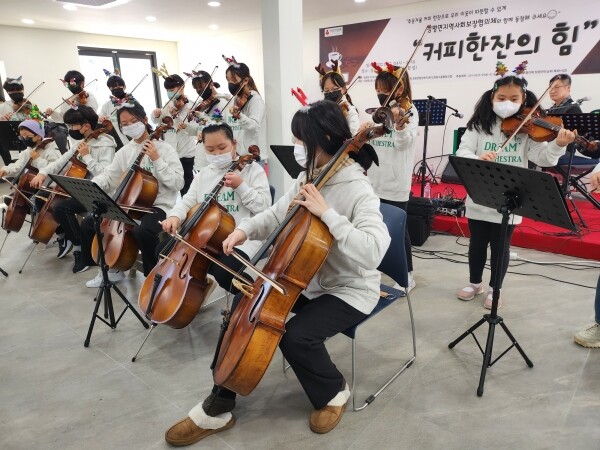 이날 행사는 작은 음악회를 함께 진행해 추운 날씨에 따뜻한 커피를 마시며 음악 감상도 할 수 있는 문화와 나눔이 함께하는 장이었다.