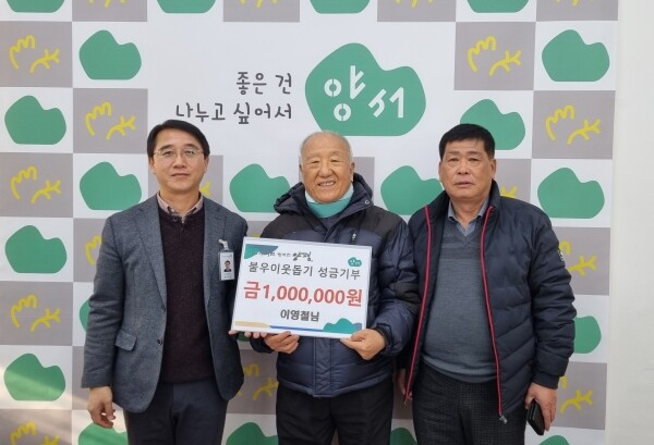 이영철 씨는 “양수리에 거주하며 이장님을 비롯해 주변의 많은 도움을 받았는데, 그 감사함을 어려운 이웃에게 나눠주고자 기탁하게 됐다”고 전했다.