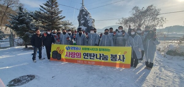 양평공사내 임직원들로 구성된 양평공사 희망봉사단은 이날 자율참여의사를 밝힌 직원들과 함께 총 1,200장의 사랑의 연탄을 배달하는 봉사활동을 펼쳤으며 연말을 맞아 사랑의 온기를 나눴다.