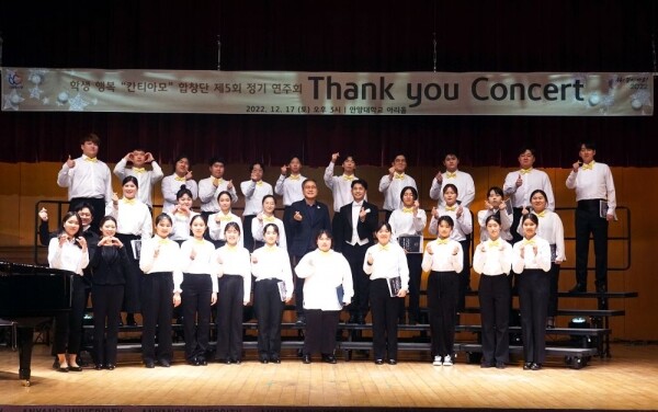 학생 행복 “칸티아모” 합창단은 안양시 인재육성재단이 안양대학교 음악학과와 함께 관내 중·고등학생들의 꿈과 비전을 응원하고 문화감수성을 향상시키고자 설립했으며 정찬혁 지휘자를 비롯해 안양대학교 대학생 멘토단이 1년간 지도해 정기연주회 무대를 함께 빛냈다.