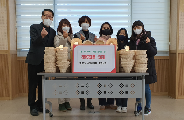 라탄 공예품은 올해 1동1교 하모니 공모사업으로 “효성1동 주민자치회와 효성남초등학교가 함께하는 라탄공예” 사업을 통해 학생들이 직접 만든 작품이다.
