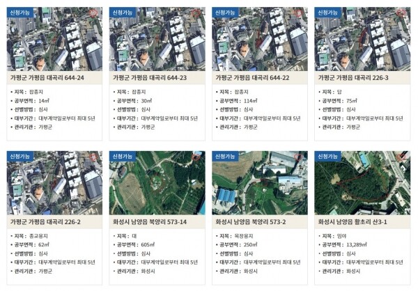 경기도는 공유재산 공익목적 활용강화를 위해 비대면 계약 활성화를 위해 기존 경기공유서비스 플랫폼을 활용한 ‘온라인 공유재산 대부시스템’ 구축 기준가격 260억원 상당의 활용 가능한 도유지를 발굴해 도 관련부서에 연결해 토지매입비 절감 객관적 시각 확보를 위한 ‘공유재산자문위원회’ 구성 등을 추진했다.