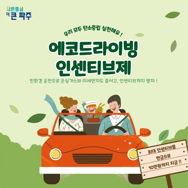 ‘에코드라이빙 인센티브제’는 친환경 운전습관 정착을 유도함으로써 도로·수송 부문의 온실가스 배출량을 저감하기 위해 파주시가 2021년 8월 전국 최초로 시행한 제도다.