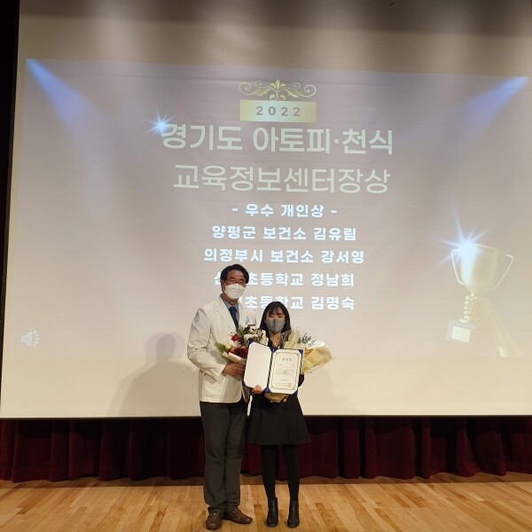 이날 표창은 코로나19의 어려운 상황 속에서 아토피·천식 예방관리사업 활성화 및 진취적 사업 여건 조성을 위해 실시했으며 양평군보건소는 좋지 않은 여건에서도 아토피·천식 예방관리사업 및 아토피·천식 안심 학교를 적극적으로 운영하며 지난 2020년에 이어 올해도 경기도지사 표창과 센터장상을 수상하는 영예를 안았다.