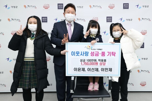 [뉴스서울] 12월 20일 ‘이윤제, 이선제, 이민제’ 세 자매는 연말에 온정의 손길을 모아 소외되고 어려운 이웃을 위해 이웃돕기 성금 100만원과 75만원 상당의 학용품을 군에 기탁해 전달식을 가졌다.