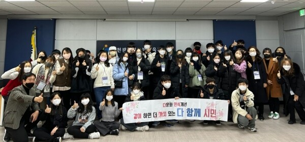 ‘다 함께 시민’은 사전 신청을 통해 참여한 초등학교 5개교 중학교 4개교 학생들을 대상으로 운영했고 초·중학교 교사 10명이 학생들을 지도했다.
