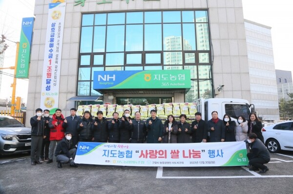 장순복 조합장은“추운 겨울과 코로나 장기화로 어려움을 겪고 있는 저소득 가정에 따뜻한 위로와 도움이 됐으면 하는 마음으로 기부를 하게 됐다”며 “앞으로도 지도농협은 우리 지역 사회에 공헌할 수 있는 일에 적극적으로 앞장서고 나눔 문화에도 지속적으로 동참하겠다”고 소감을 밝혔다.