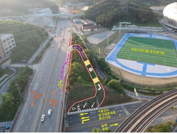 구는 미르스타디움 옆 가용부지에 길이 110m 구간의 P턴 진입로를 조성하는 공사에 4억6000만원을 투입, 내년 6월 완공할 예정이다.