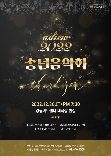 송년음악회 관련한 자세한 사항은 홈페이지에서 확인할 수 있으며 강동문화재단으로 전화 문의하면 안내받을 수 있다.