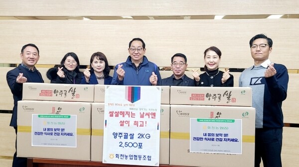 박영서 조합장은 “예년보다 더 추운 겨울을 보내고 있을 이웃들이 작은 나눔이지만 따뜻한 시간을 보낼 수 있었으면 좋겠다”며 “앞으로도 지역사회에 지속적인 나눔을 실천하고 어려움 극복을 돕는 회천농협이 되겠다”고 말했다.