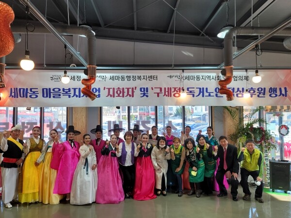 이날 100여명의 관내 어르신을 대상으로 ‘맛집명소 구세정’에서 한우사골우거지탕과 공연을 위한 장소 제공, 승진고속관광은 거동이 불편한 어르신들을 위한 버스 지원, 참소망 요양원은 행사에 필요한 비용을 지원했다.