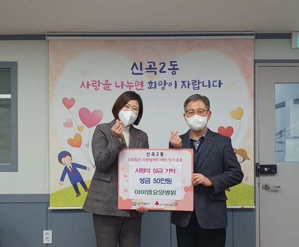 명유미 아이엠 요양병원 행정 부원장은 “신곡2동에 도움이 필요한 이웃이 있다는 얘기를 듣고 그냥 지나칠 수 없어 성금 기탁을 결심하게 됐다”며 “작은 나눔들이 누군가에게는 큰 희망이 될 수 있다고 생각하며 앞으로도 더 많은 사람들에게 희망을 전하고 싶다”고 말했다.