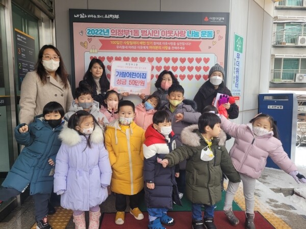 의정부시 의정부1동 가람어린이집 기부천사들, 성금 50만원 전달