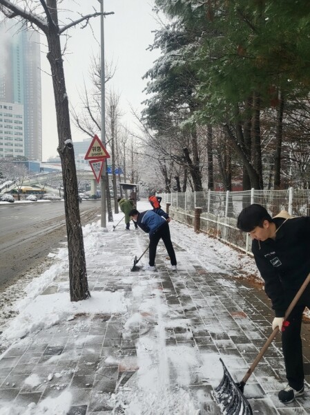 백석1동 직원들은 이른 새벽 재난문자를 확인하고 한결같은 마음으로 제설 작업에 동참 했다.