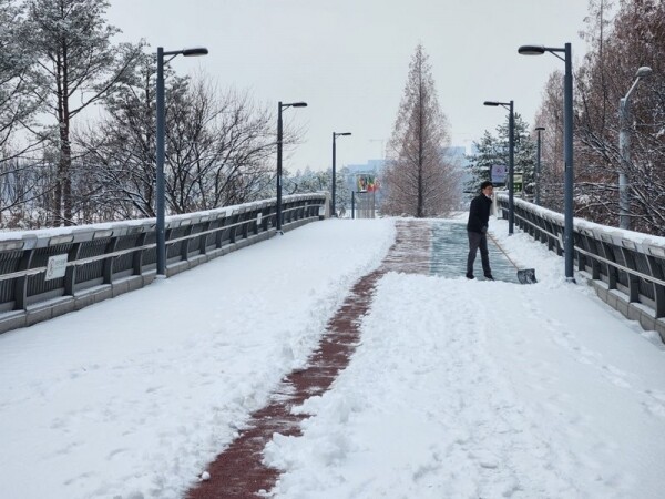 이에 동 행정복지센터 직원들과 제설봉사단 회원들은 육교, 보도 및 지하철역 등을 중심으로 눈을 쓸고 염화칼슘을 살포하며 안전사고 예방에 만전을 기했다.