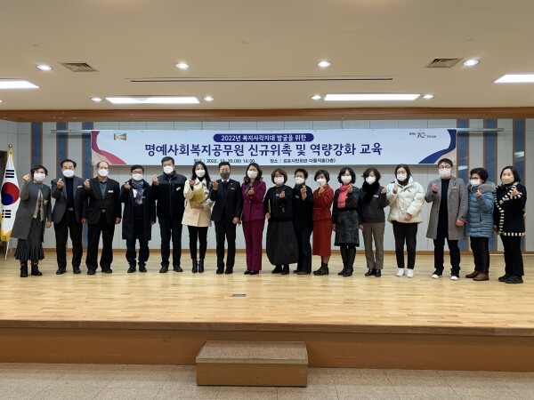 한기정 복지교육국장은 “김포시 명예사회복지공무원이 지역 곳곳에서 무너지는 가정들을 찾아내 사회안정망 안에서 지원받을 수 있도록 연계하는 의미 있는 봉사를 해 주셨으면 좋겠다”고 당부했다.
