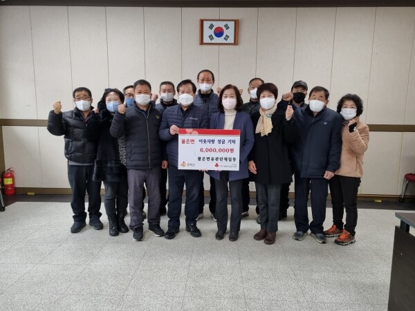 이번 이웃돕기 성금 모금에는 불은면 이장단, 주민자치위원회, 체육진흥후원회, 새마을지도자협의회, 부녀회, 지역사회보장협의체, 농업경영인연합회 등 11개 유관단체가 참여했다.
