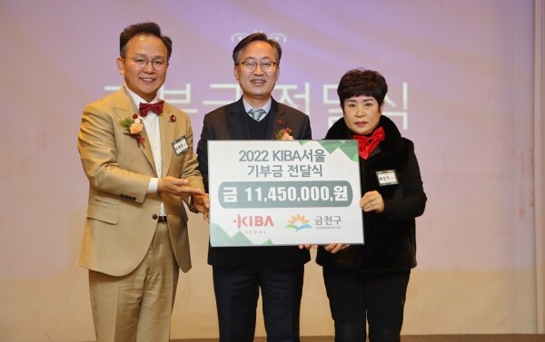 기탁식은 12월 20일 KIBA서울 송년의 밤 행사에서 유성훈 구청장, KIBA서울 이계우 회장, 배춘자 사회공헌분과위원장 등 230명이 참석한 가운데 엘컨벤션에서 진행됐다.