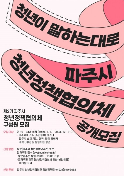 제2기 파주시청년정책협의체 40명 공개모집.청년정책 이끈다