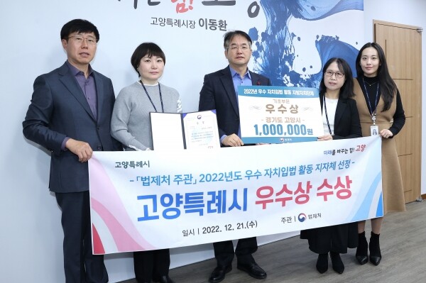 올해는 지자체 9곳이 자치입법 활동 우수기관으로 선정됐는데, 고양시는 ‘고양시 어르신 안심주치의 운영 및 지원에 관한 조례’가 우수조례로 선정되어 기초부문에서 법제처장 ‘우수상’ 표창과 포상금 100만원을 수상했다.